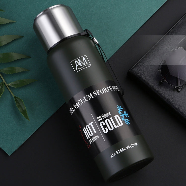 304 Stainless Steel Insulated Mug Large Capacity Sports Water Cup Outdoor Travel Pot, Capacity: 750ml(Dark Green)