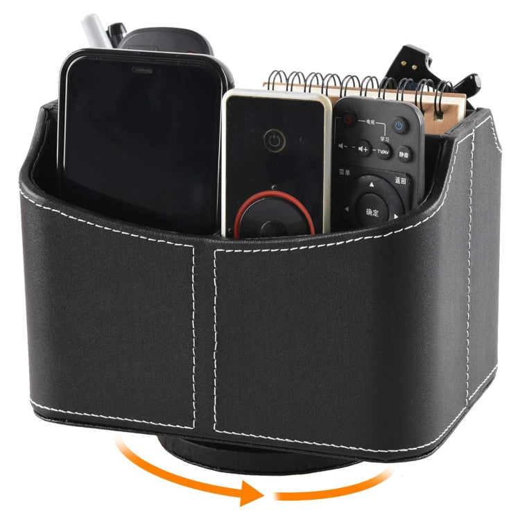 360 Degrees Rotating Desk Organizer Storage Box PU Leather Remote Control Holder, Style: Geometric Pattern
