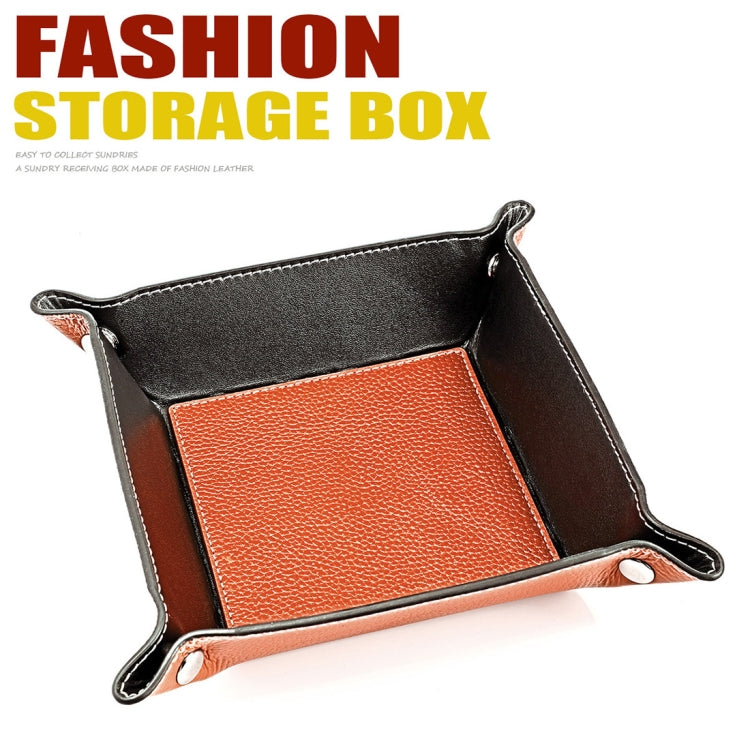 7001 Leather Desktop Square Storage Box Household Life Oddments Tray(Brown)