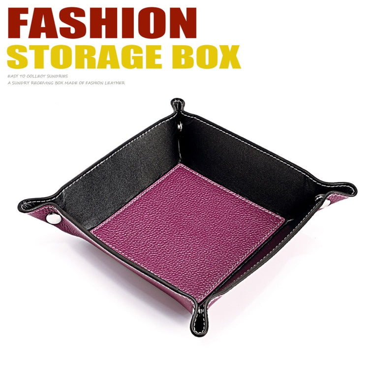 7001 Leather Desktop Square Storage Box Household Life Oddments Tray(Purple)