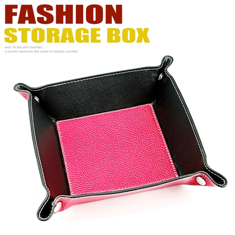 7001 Leather Desktop Square Storage Box Household Life Oddments Tray(Rose Red)
