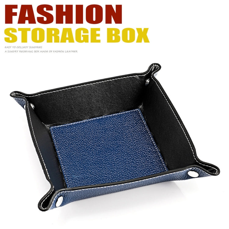 7001 Leather Desktop Square Storage Box Household Life Oddments Tray(Royal Blue)