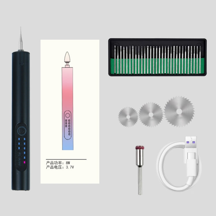 A288 Electric Grinding Machine Small Handheld Carving Pen, Style: Black+Saw Blade+Grinding Head