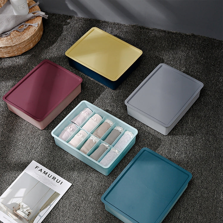 Contrast Color Underwear Storage Box Multi-Gate Plastic Bra Socks Storage Box 10 Grids with Cover(Light Blue)