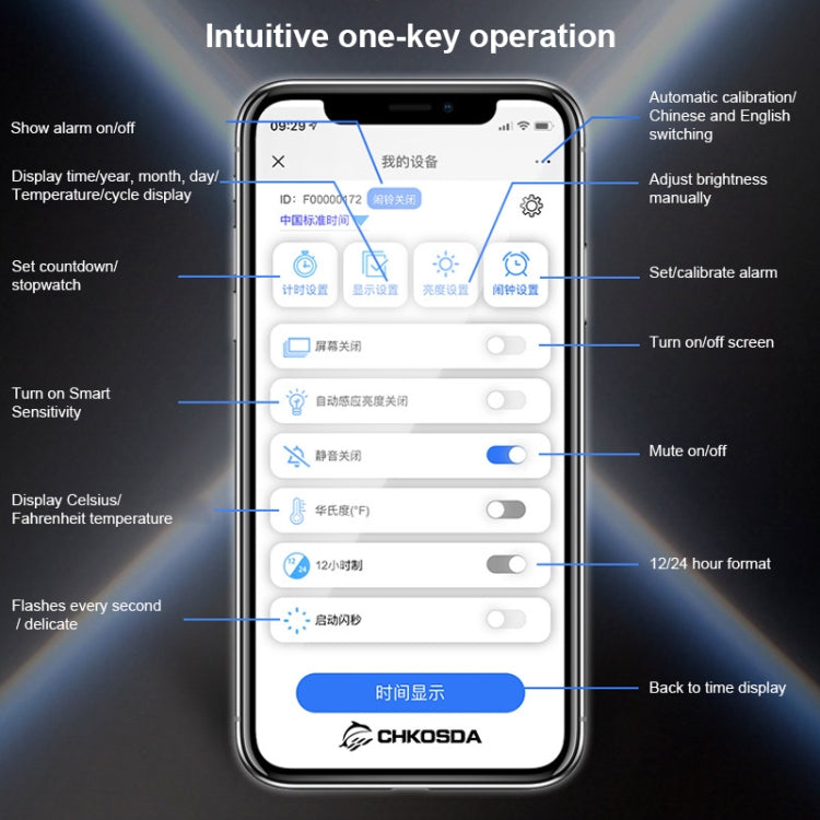 6. Function: mobile phone remote control, 5 groups of alarms, stopwatch, 999 days countdown, temperature display, calendar, intelligent light adjustment / manual 8-position brightness adjustment, power off memory function will not reset the time