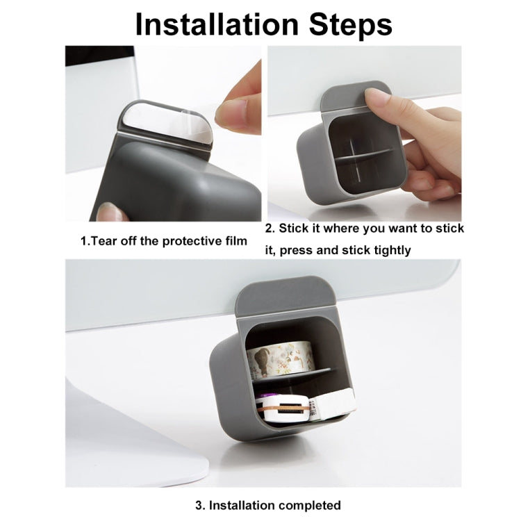 Scatola portaoggetti adesiva per scrivania portapenne ausiliaria per monitor per computer desktop, colore: bianco trapezoidale