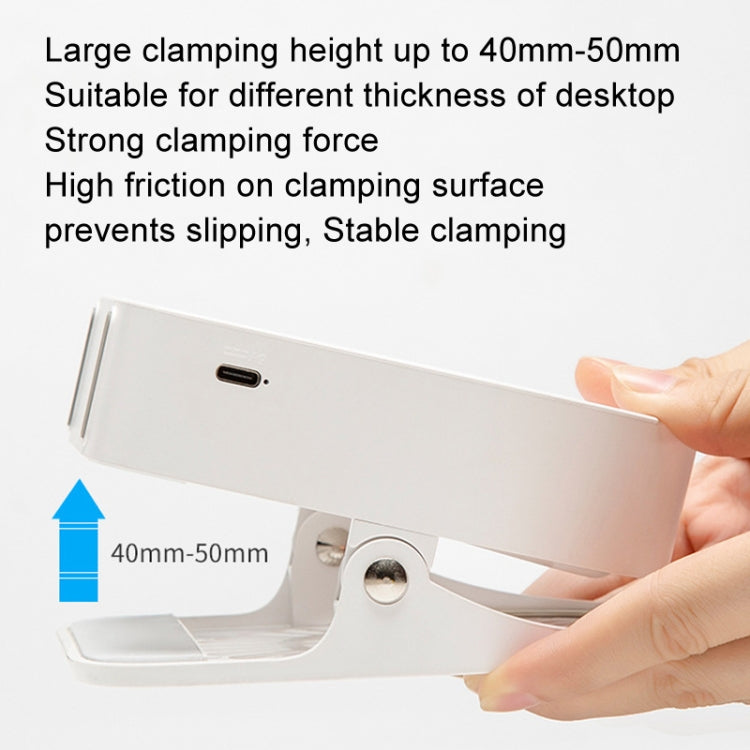 Eye-care Study Desk Lamp Dormitory Bedside Reading Rechargeable Clip-On Night Lamp(White)