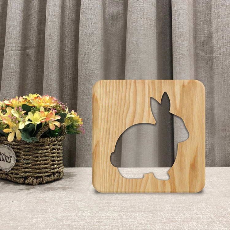 FS-T2104W Lampada da tavolo con coniglio intagliato in legno 3D USB Luce notturna artigianale (bianco caldo)