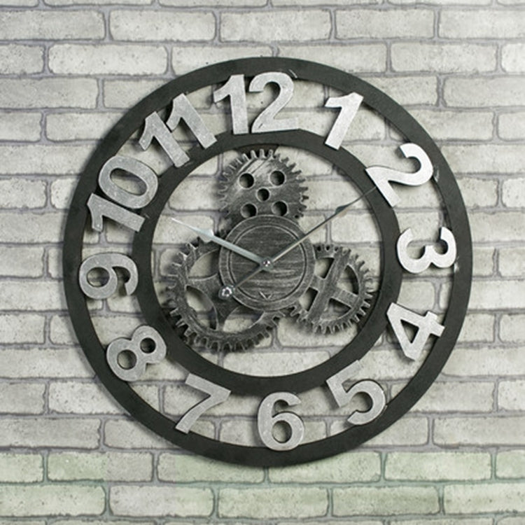 Originality American Industrial Style Wood Vintage Old Gear Wall Clock (Silver)