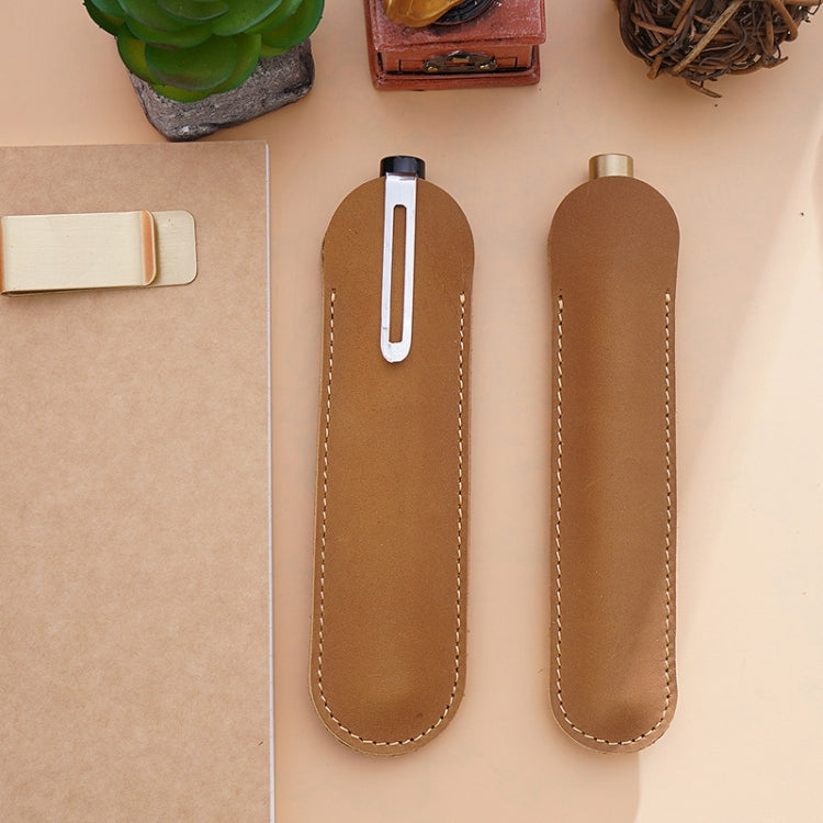 Single Pen Bag Handmade Line Pen Holder, Size: Small(Camel)