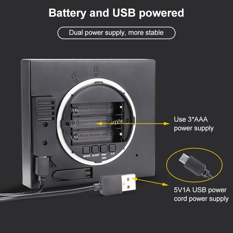 TS-WP10-B Waterproof Bathroom Wall Clock Timer Household Thermometer Hygrometer (Black)