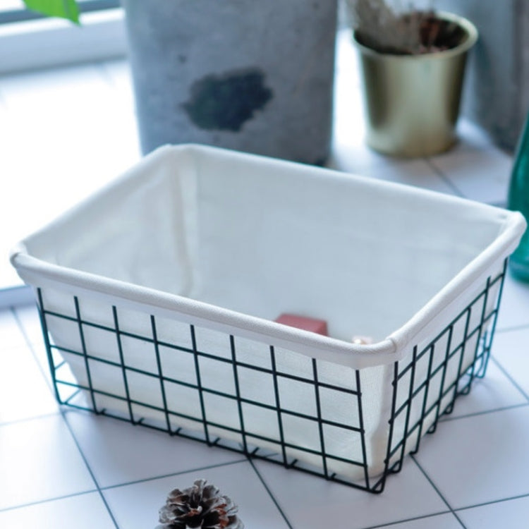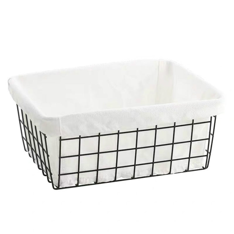 Wrought Iron Tabletop Snack Storage Box Sundries With Cloth Storage Basket(Black)