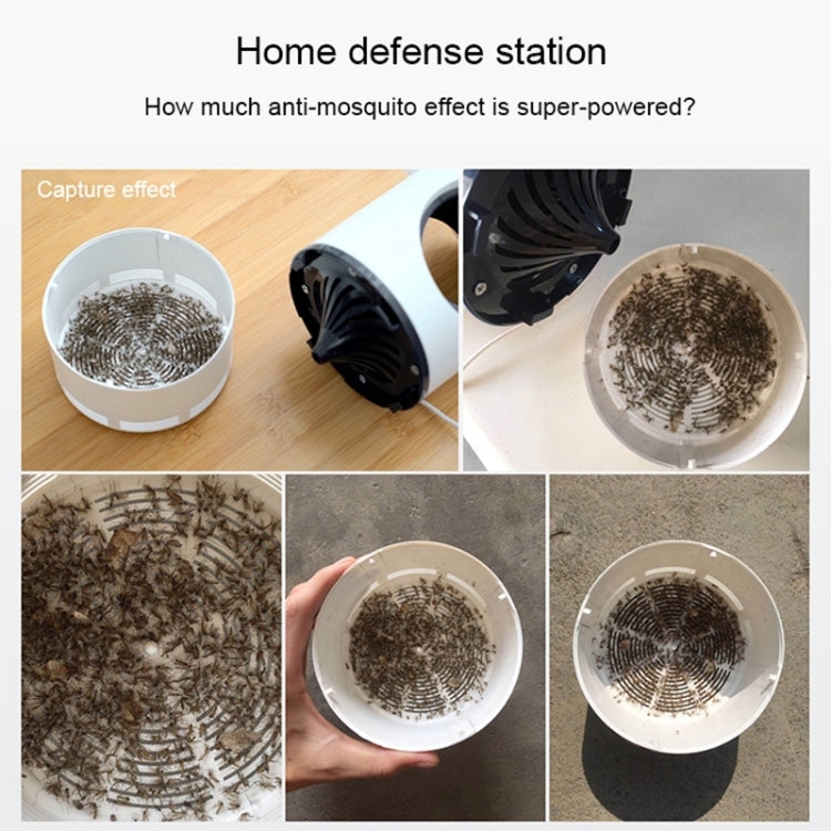 2. يتم تحريك المروحة بشكل كبير لإنشاء تيارات دوامية حول الهواء، بحيث يتم امتصاص البعوض الذي اعتاد الطيران مع تدفق الهواء إلى صينية البعوض السفلية بواسطة تيارات دوامية قوية، مما يتسبب في جفافها وتجفيفها.