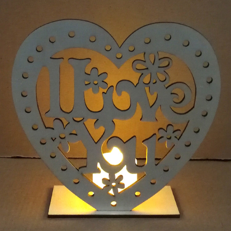 2 PCS Creative Heart Shaped Wooden Decoration Romantic Wooden Sign LED Candle Light(JM01455)