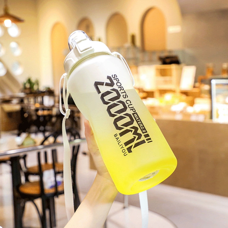 2000ml Frosted Gradient Color Large-Capacity Sports Water Cup Outdoor Portable Straw Water Bottle( Yellow White)