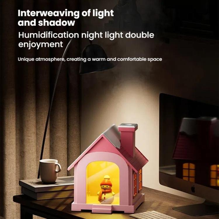 500ML Portable Mini Snow House Humidifier USB Desktop Snowman Colorful Ambient Light Air Humidifiers, Size: Rechargeable(Brown)