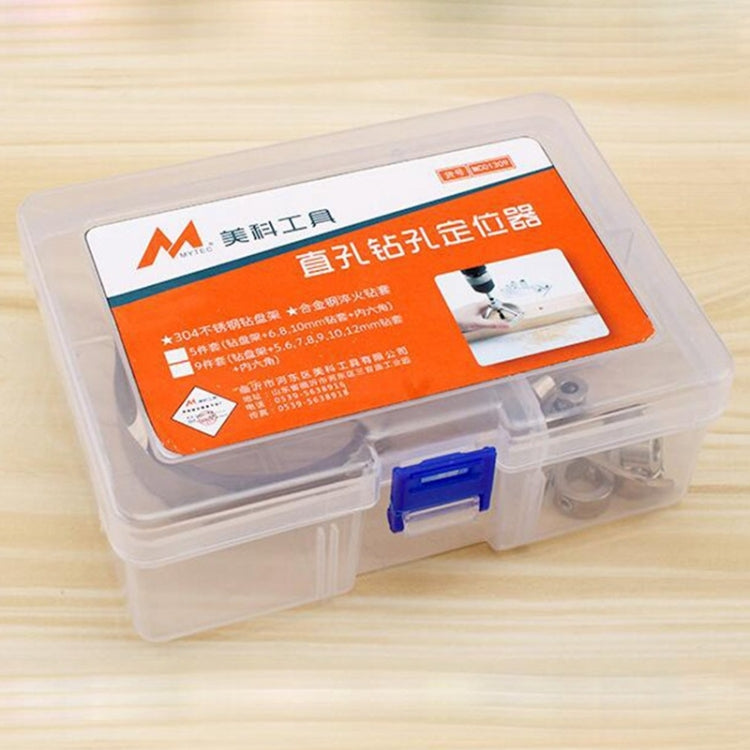 9 in 1 Drill Guide Vertical Pocket Hole Jig 5/6/7/8/9/10/12mm Drill Bit Hole Locator Stainless Steel Woodworking Jig Kit