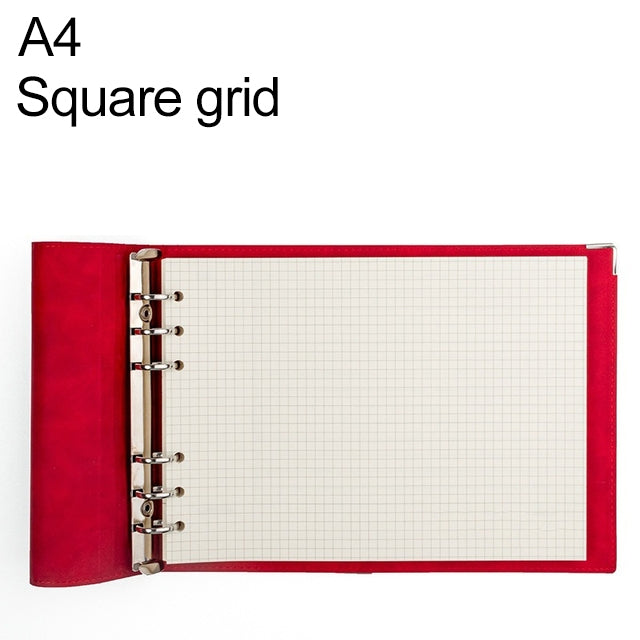 A4 Faux Leather Loose-leaf Grid Notebook, Style:Checkered Core(Red)