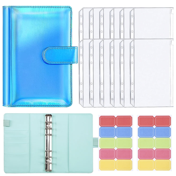 كتاب A6 ذو اللون المبهر ذو الأوراق الفضفاضة بالليزر معكرون PU كتاب الميزانية النقدية (أزرق)