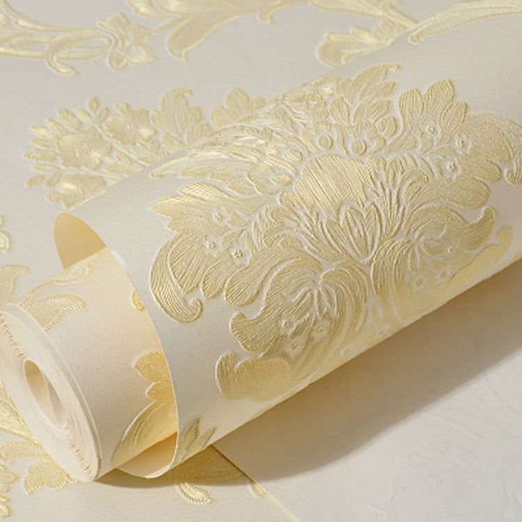 Bedroom Living Room Classic Damascus 3D Precision Pressed Non-Woven Fabric Self-Adhesive Wallpaper, Specification: 0.53 x 3 Meters(JA203 Off-white)