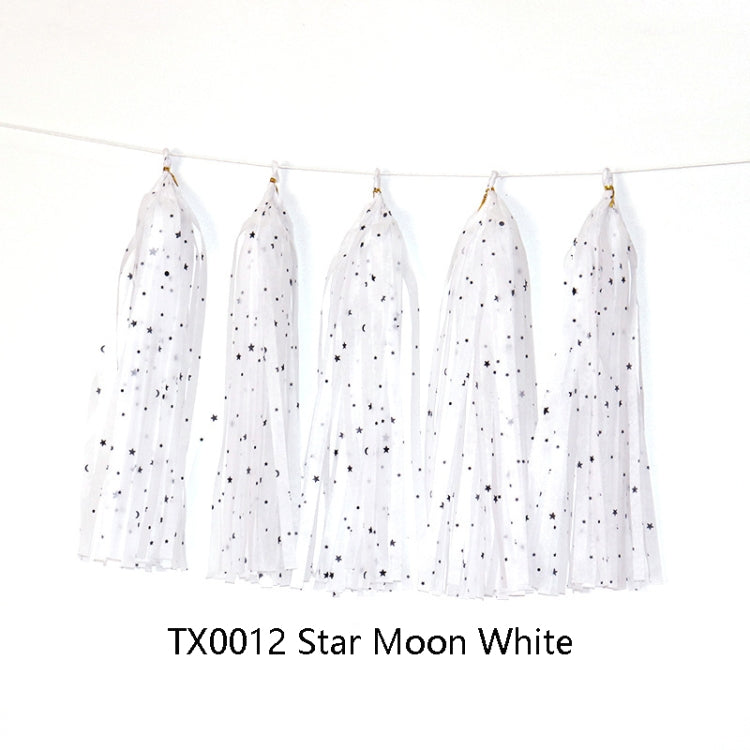 Color Polka Dot Paper Tassels Birthday Room Decoration Ribbon Garland(TX0012 Star Moon White)