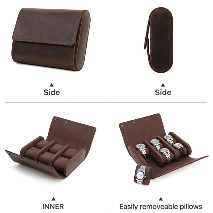 CONTACTS FAMILY Vintage Crazy Horse Leather Outdoor Travel Watch Case(Brown)