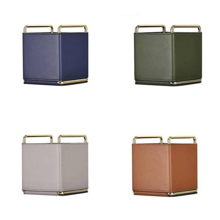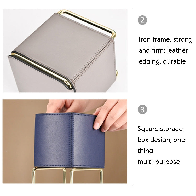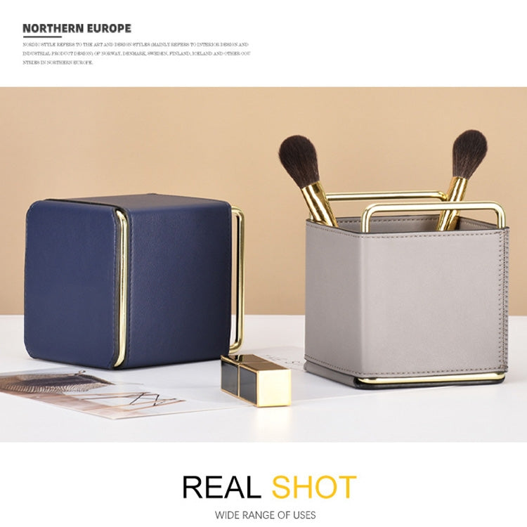 Cortical Makeup Brush Storage Bucket Barrel Desktop Leather Pen Barrel(Royal Blue)