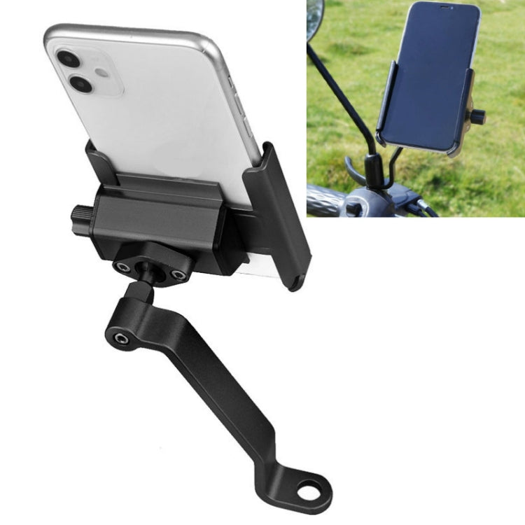 CYCLINGBOX Aluminum Alloy Mobile Phone Holder Bicycle Riding Takeaway Rotatable Metal Mobile Phone Bracket, Style:Rearview Mirror Installation(Black)