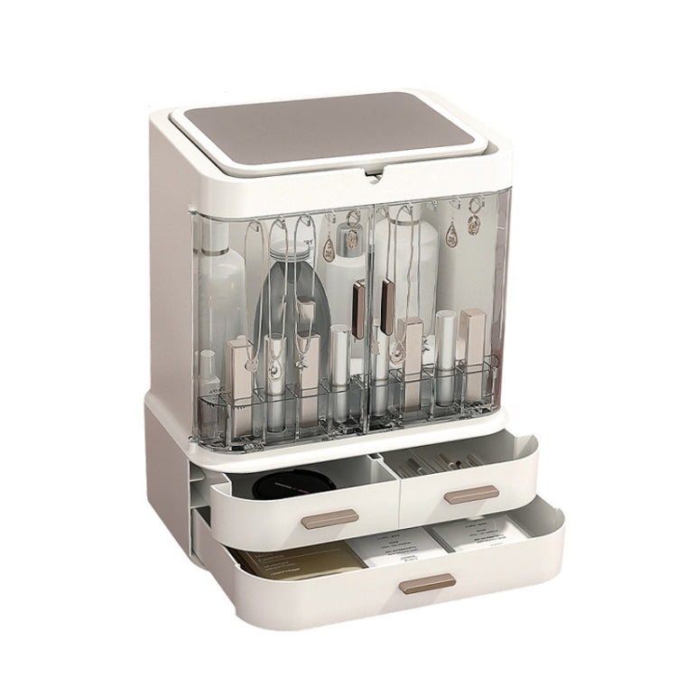 Dust-Proof Drawer Type Cosmetic Storage Box Household Large-Capacity Desktop Lipstick Storage Box, Colour: LED Model White