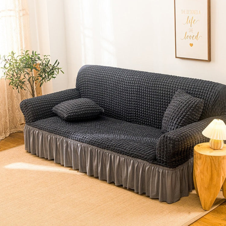 Living Room Stretch Full Coverage Skirt Style Sofa Cover, Size: Double M 145-185cm(Dark Grey Middle Grey)