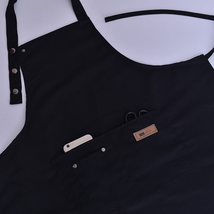 مريلة مطبخ للطبخ بلون نقي للنساء والرجال، مآزر الشيف النادل، مقهى، شواء، تصفيف الشعر (أسود)