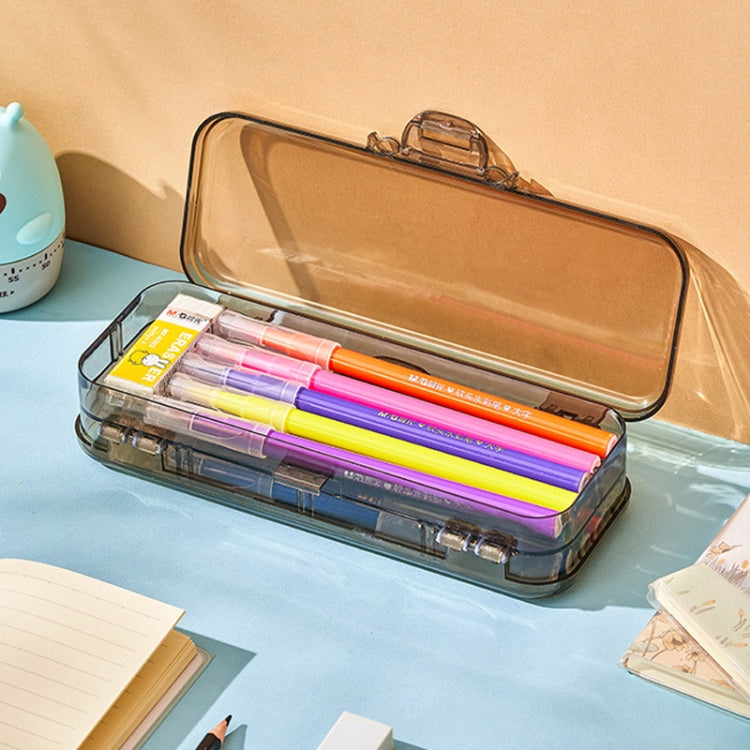RJ 26 حقيبة قلم بسيطة ذات سعة كبيرة لرفع اليد وشفافة بطبقة مزدوجة صندوق تخزين الأدوات المكتبية للطلاب (كاكي)