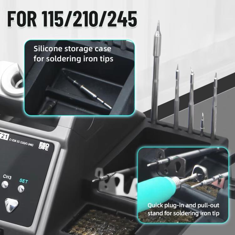 5. Large size silicone storage compartment for 115/210/245 soldering iron tips