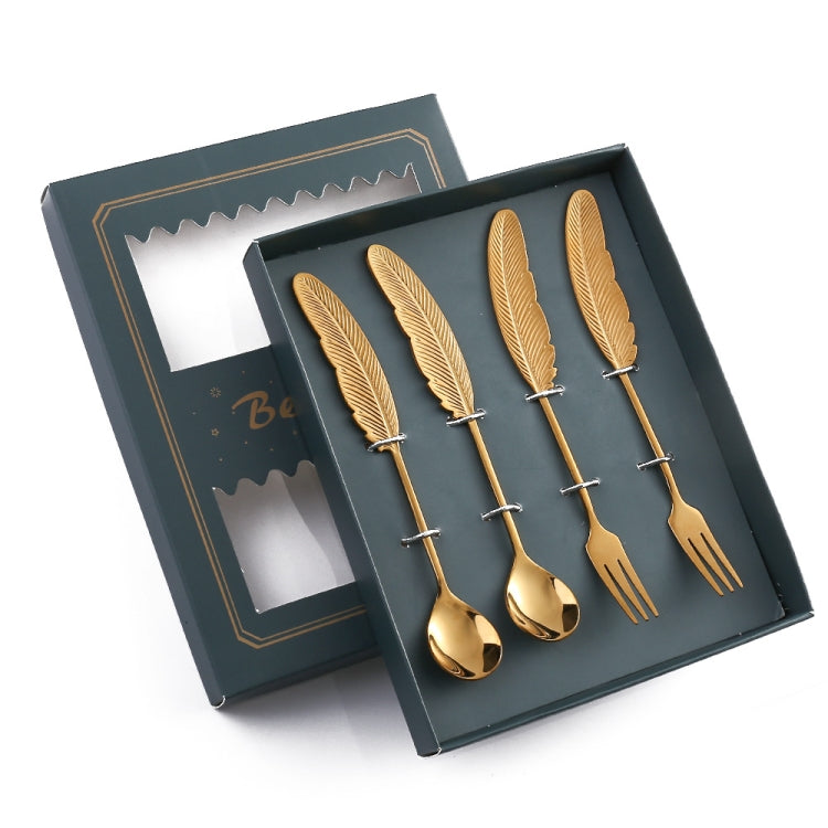 304 Stainless Steel Feather Spoon Fork Literary Tableware,Style: 4 In 1 Titanium-Green Box