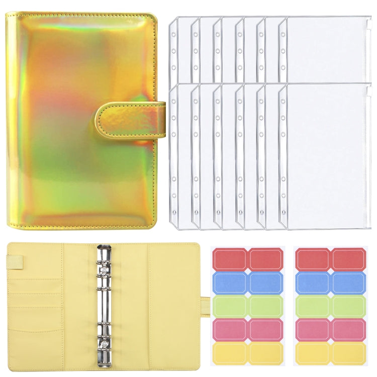 A6 Dazzling Color Loose-leaf Handbook Laser Macaroon PU Cash Budget Book(Bright Yellow)