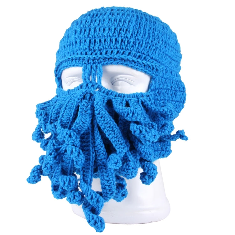 Amurleopard Unisex Barbarian Knit Beanie Octopus Tentacle Cap Winter Warm Face Mask Crochet Hat(Blue)