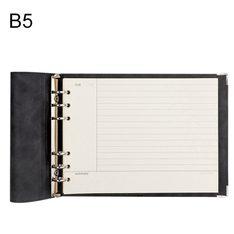 B5 Faux Leather Loose-leaf Grid Notebook, Style:Cornell Horizontal Wire Inner Core(Black)