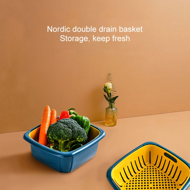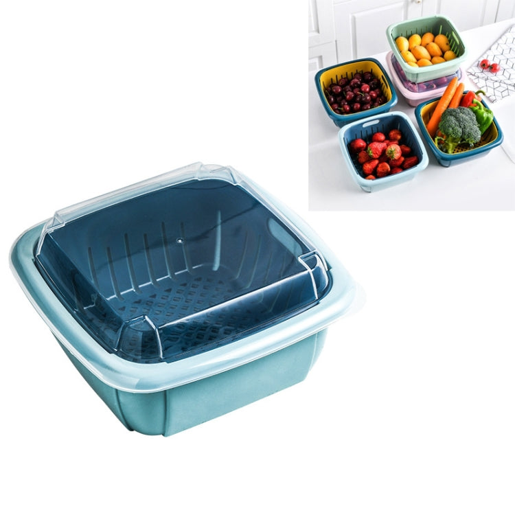 Creative Multifunctional Double-deck Drain Basket Kitchen Refrigerator Fresh Box Plastic Fruit Storage Basket with Lid(Sky Blue)