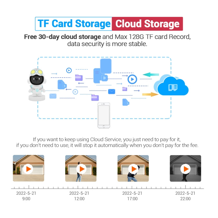 7. دعم التخزين السحابي، وبطاقة ذاكرة تصل إلى 128 جيجا، ودعم تسجيل الصوت وتسجيل التنبيه