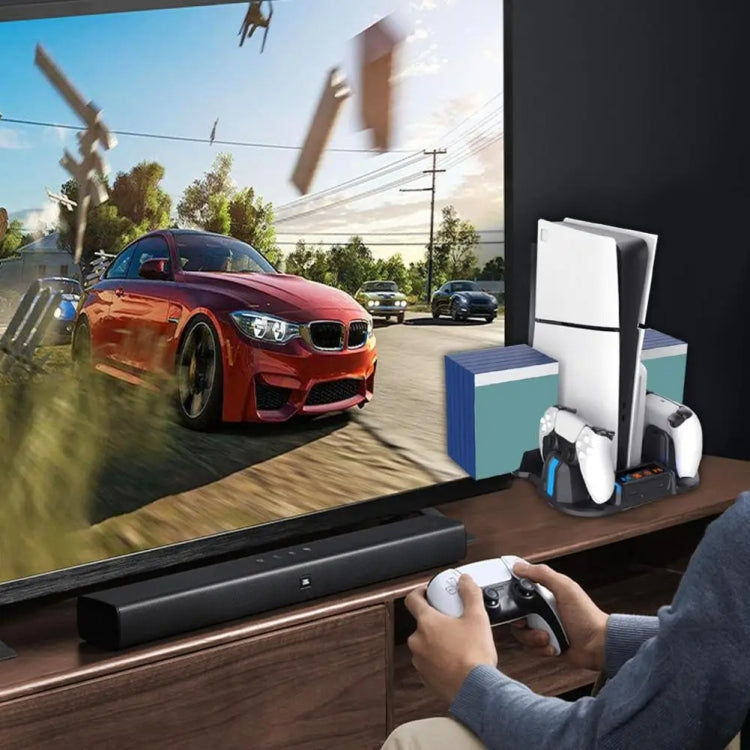 لسوني PS5 سليم PGTECH GP-521 مقبض قاعدة شحن المضيف رف التبريد مع رف القرص (أسود)