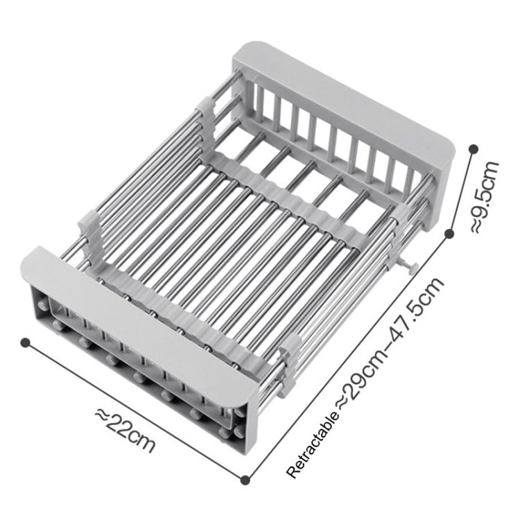 Kitchen Drainage Rack Stainless Steel Retractable Sink Shelf Flatware Storage Organizer, Specification: Large Gray