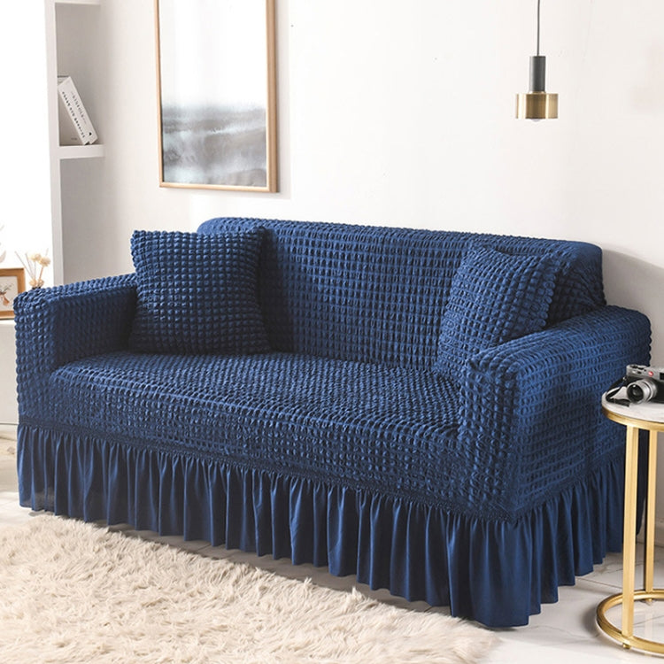 Living Room Stretch Full Coverage Skirt Style Sofa Cover, Size: Double M 145-185cm(One-color Greek Blue)