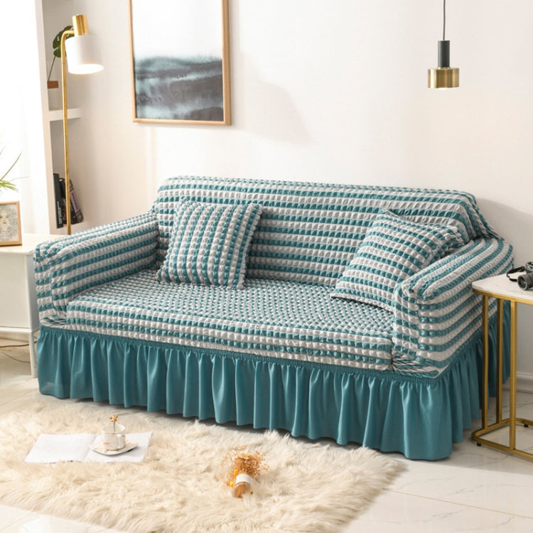 Living Room Stretch Full Coverage Skirt Style Sofa Cover, Size: Double M 145-185cm(Two-colors Blue)