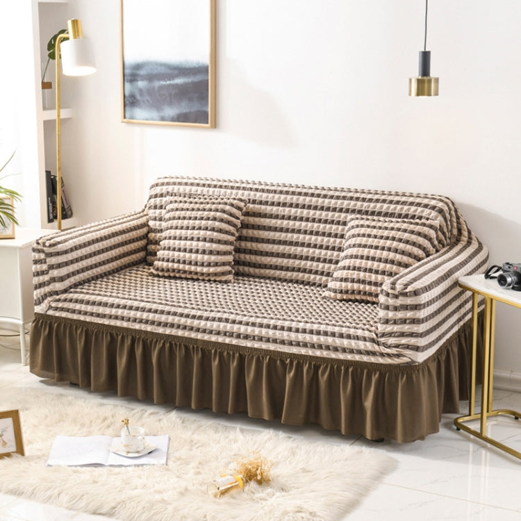 Living Room Stretch Full Coverage Skirt Style Sofa Cover, Size: Double M 145-185cm(Two-colors Coffee)