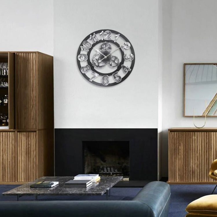 Retro Wooden Round Single-sided Gear Clock Number Wall Clock, Diameter: 80cm (Silver)