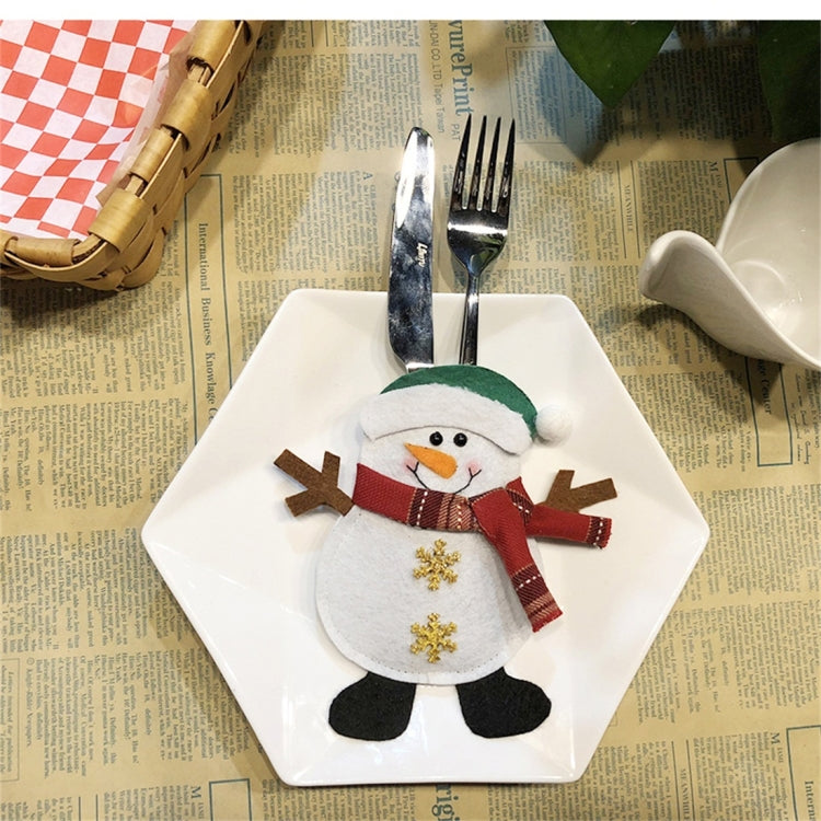 Snowman Pattern Tableware Knife Fork Pocket Cover Bag Christmas Decoration
