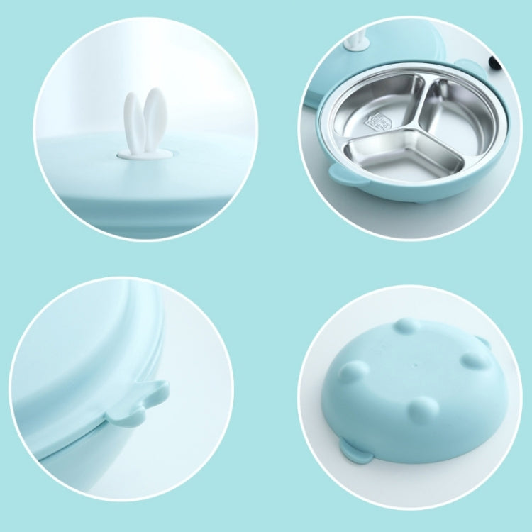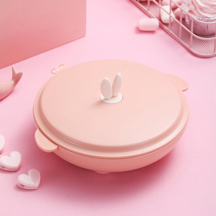 Stainless Steel Baby Dinner Plate Cartoon Rabbit Ears Shape Lattice Student Tableware Infant Food Supplement Training Rice Bowl Fast Food Plate(Pink)