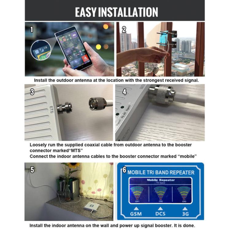 Triple-Band 900/1800/2100 Mobile Phone Signal Reception Booster Amplifier, Specification: EU Plug(With 10m Cable)