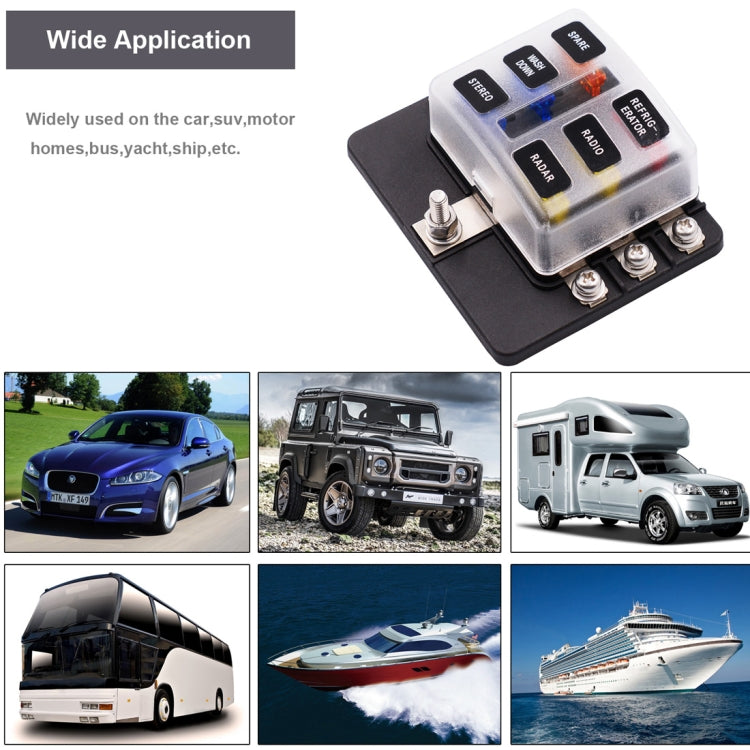 1 in 6 Out 6 Way Circuit Fuse Box Screw Terminal Section Fuse Holder Kits with LED Warning Indicator for Auto Car Truck Boat