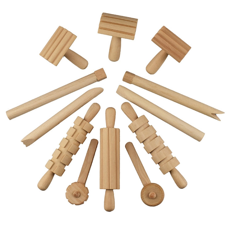12 In 1 Plasticine Accessory DIY Slime Play Dough Wooden Tools Roller Stamp Rolling Pin Spoon